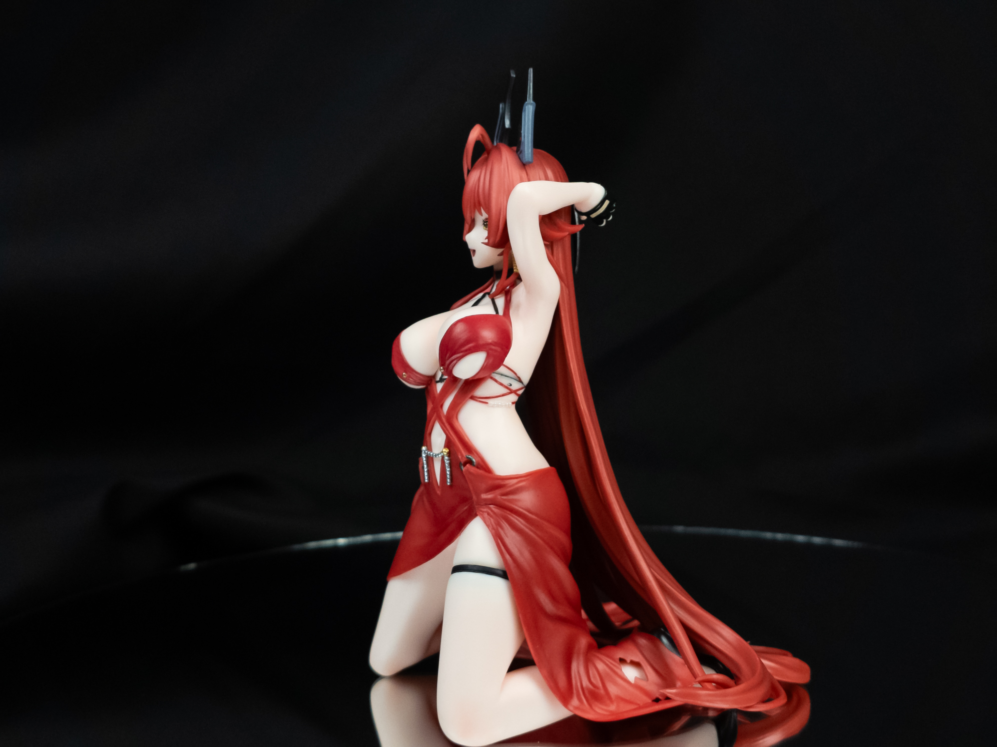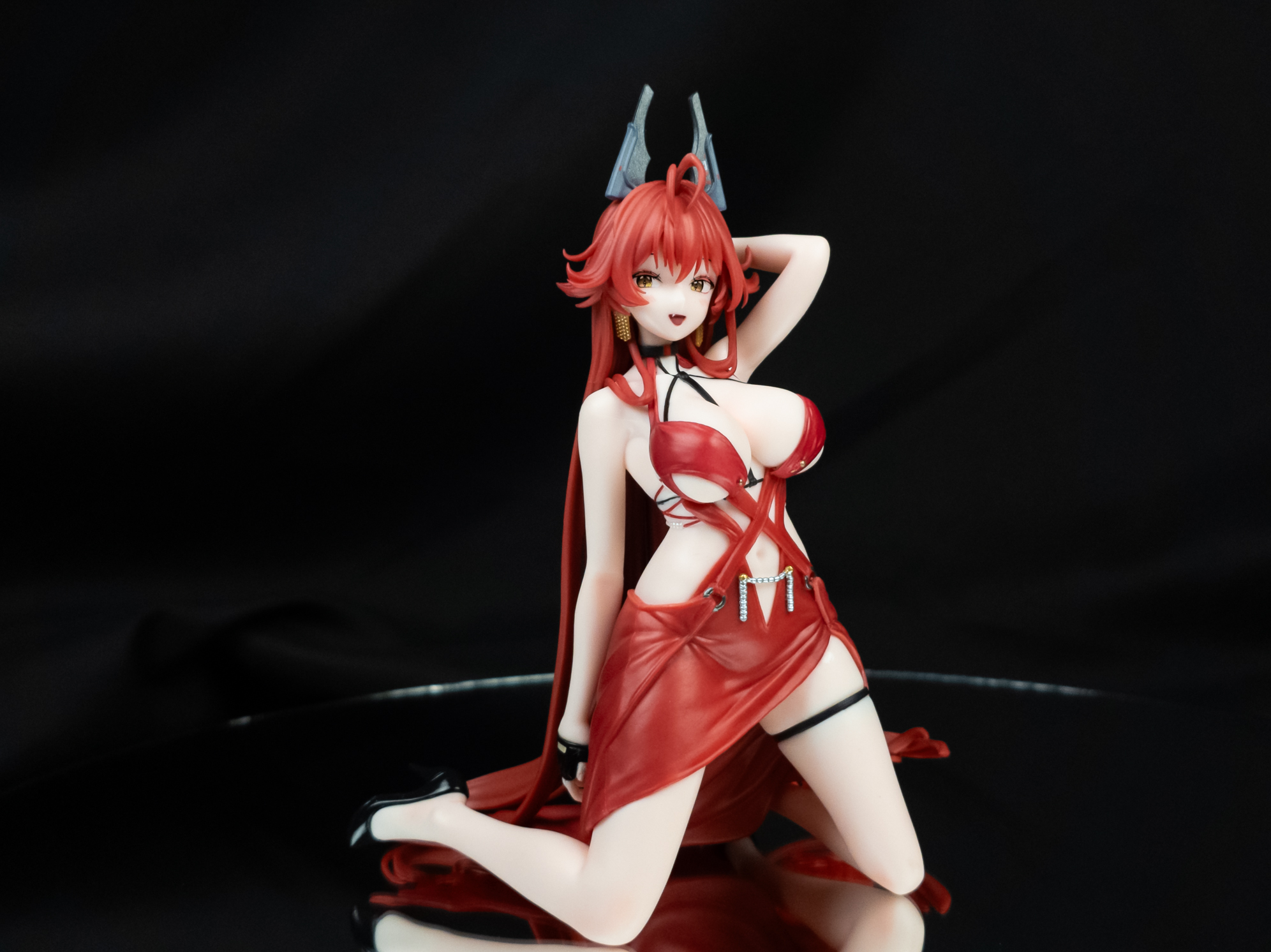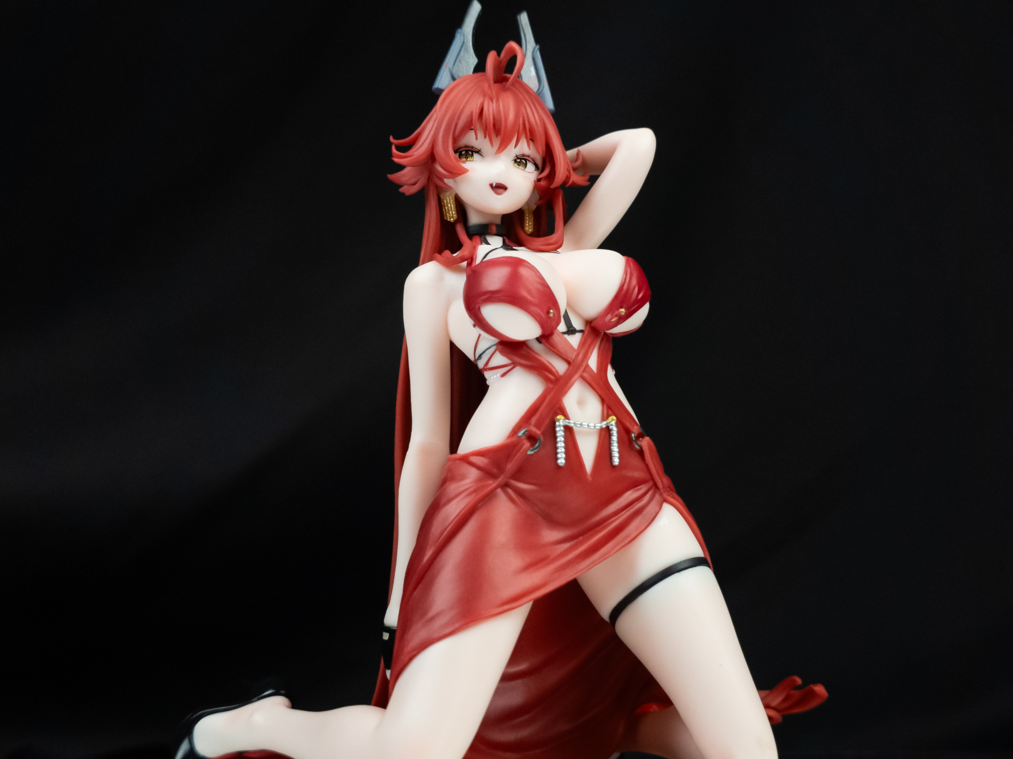足を広げているポーズのためなのは間違いない、、、それによってドレスが引っ張られる感じや、皴がいい・・・!