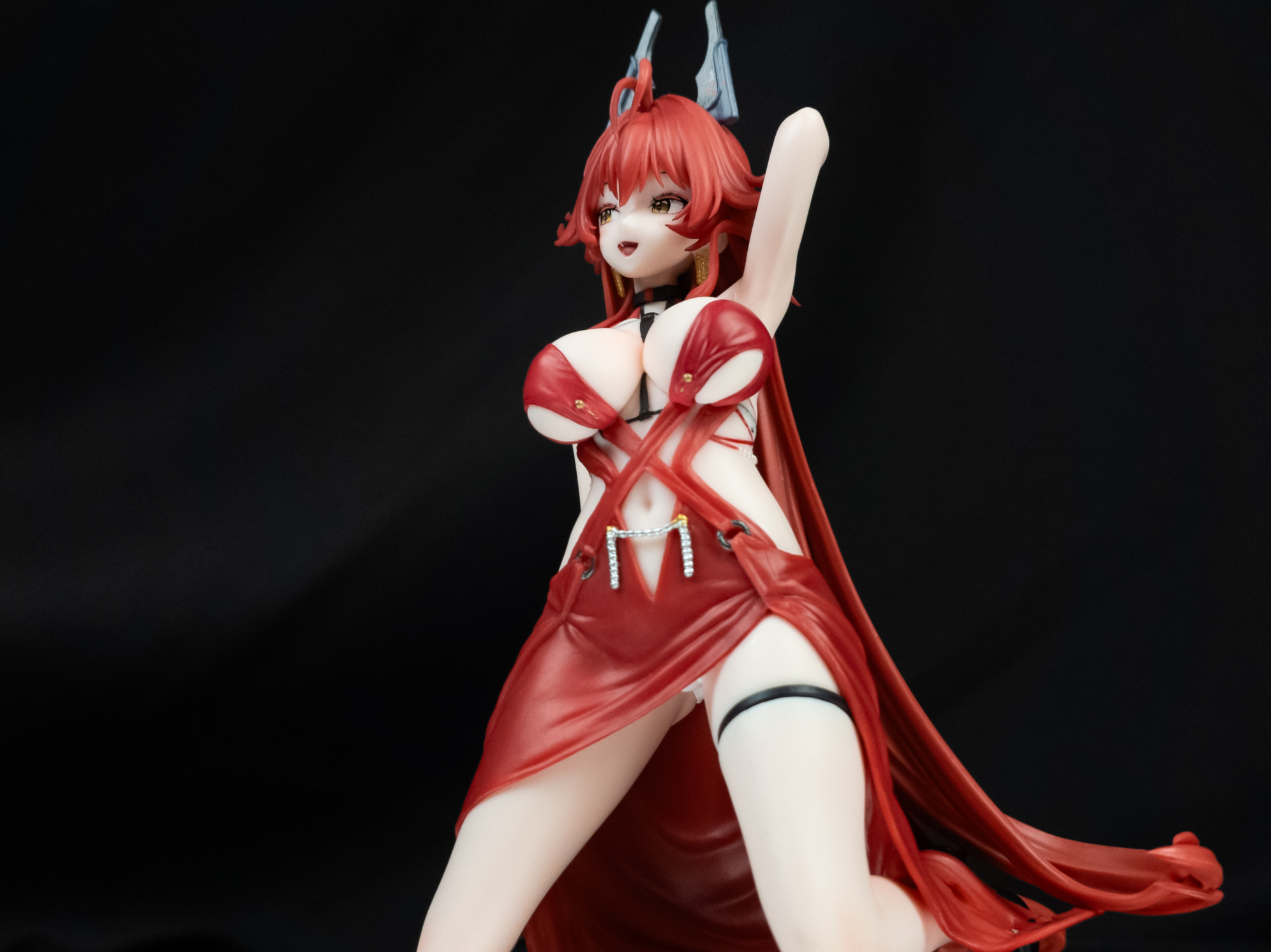 - ポーズ○、大胆なバスト周り、チラリズムを味わえる際どいスカート